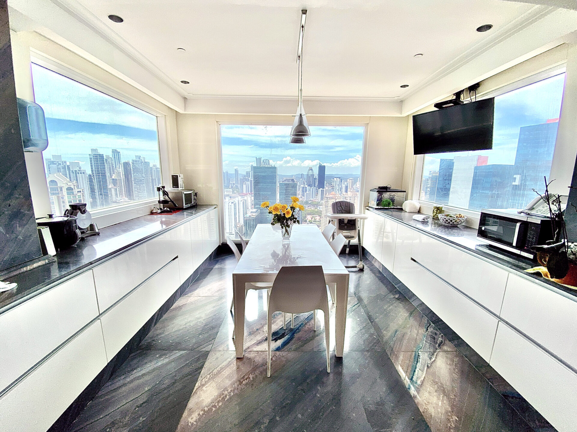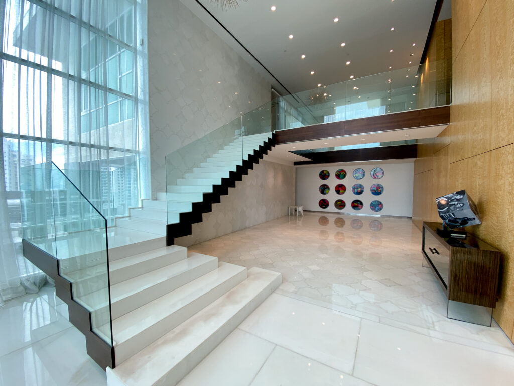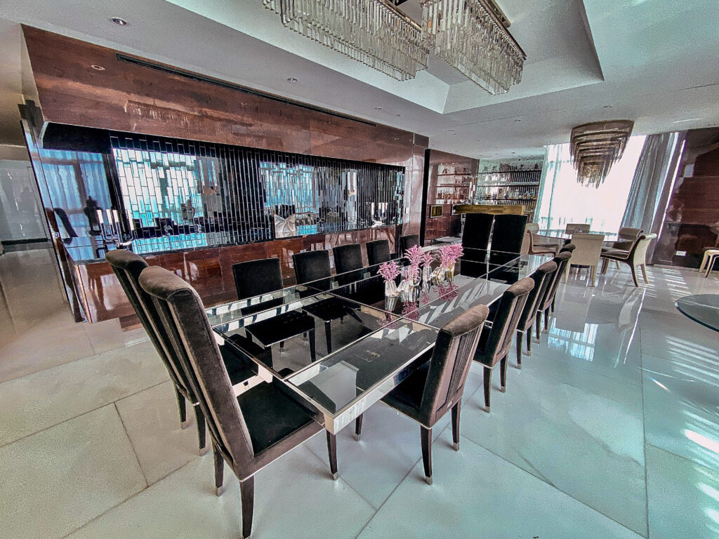Every inch of this penthouse exudes opulence, from the pristine Italian marble floors to the walls graced with rare Tamo wood. Experience the allure of La Murina lighting fixtures, bathrooms lavishly clad in onyx, and the sublime beauty of Fendi Casa furnishings. Every detail was meticulously curated, offering a living experience that transcends the ordinary